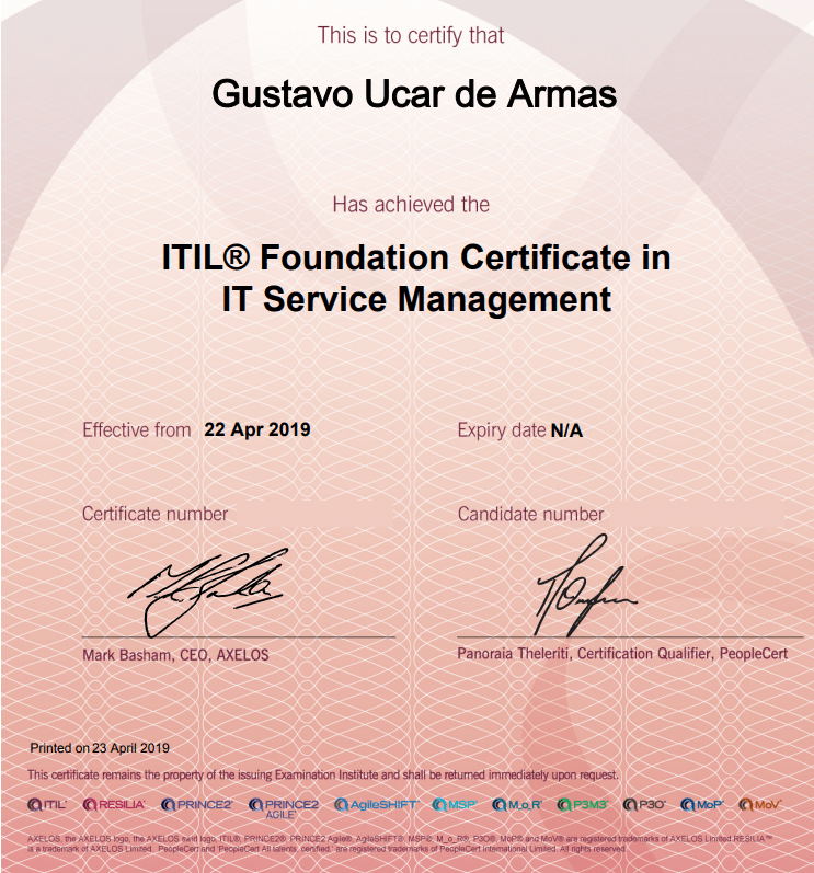 2019 Certificación Itil Foundation