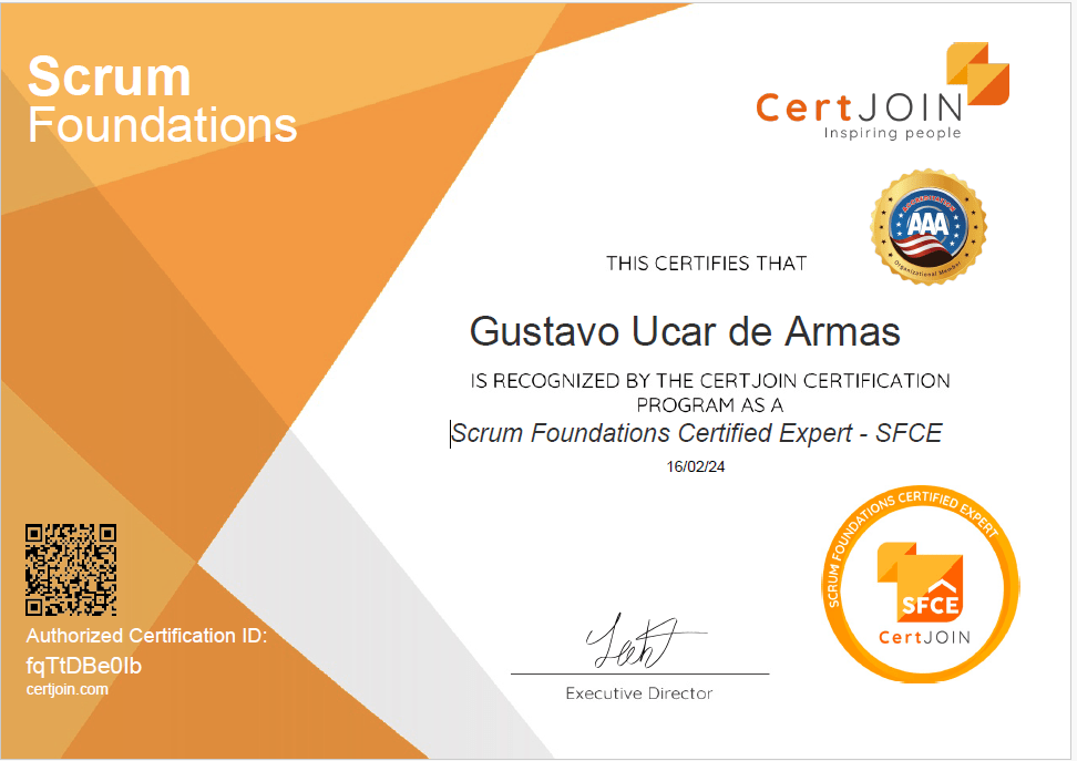 Certificación de Scrum Foundations 16/02/2024 de CertJoin